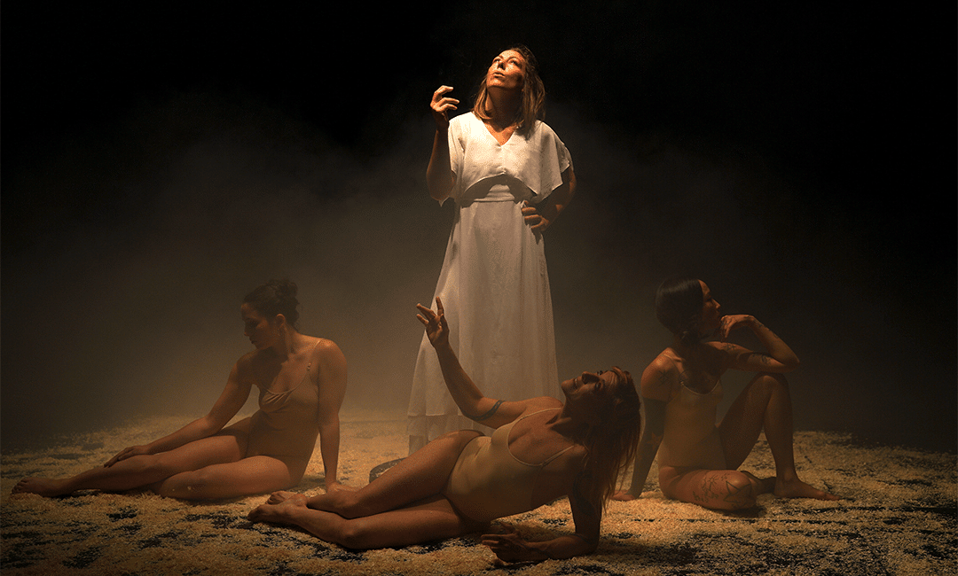 Les 4 femmes de Dieu, très librement inspiré de l’ouvrage éponyme de Guy Bechtel qui traite de la représentation de la femme à travers les siècles (la sorcière, la sainte, la putain ou encore l’imbécile), nous plonge dans l’univers de 4 d’entre elles. Leur sillage nous emmène visiter plusieurs tableaux évocateurs de mythes créés autour de celle-ci, révélant une réflexion identitaire. Alors que le spectacle se monte petit à petit sous nos yeux, dans un univers onirique acidulé aux notes comiques, les artistes nous dévoilent une partie de l’envers de leur décor. Lâchons les fauves…