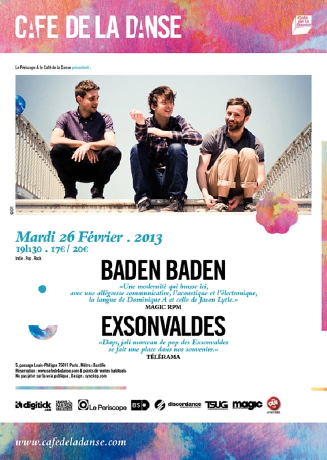 Avec leur Pop-folk ambitieuse, peuplée d’émotions délicates et fragiles, les Baden Baden viennent de sortir un 1er album remarqué sur l’excellent label Naive. La presse est unanime (Inrocks, Magic, …). Ils entament une tournée qui les mènera en Espagne, Allemagne, Belgique, Suisse et bien évidemment France. Leur passage à Paris se fera au Café de la Danse. http://www.facebook.com/badenbadenmusic