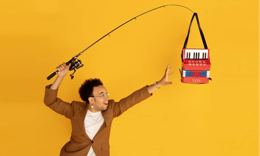 À seulement 25 ans, l’accordéoniste Théo Ould envisage l’expression musicale comme un art total. Il explore toutes les possibilités de son instrument – « à mi-chemin entre une machine à écrire et un engin extraterrestre » – dont il défend les couleurs avec grande fierté.