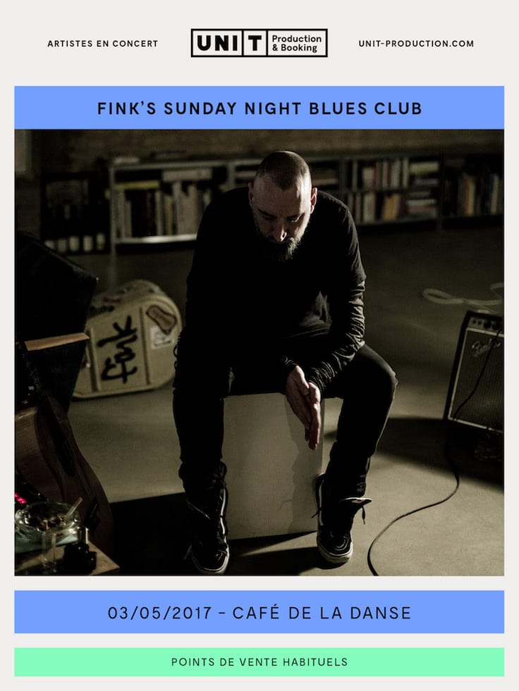Fink’s Sunday Night Blues Club Tour est une série de concerts exclusive de Fin Greenall (de Fink) qui jouera les morceaux de son prochain projet annoncé très prochainement.
