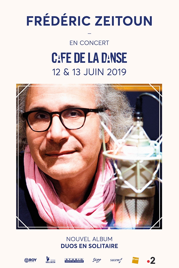 Accompagné sur scène par Bruno Bongarçon et Marc Berthoumieux, sans compter quelques invités surprises ! On ne dira jamais assez l’importance des restaurants dans l’histoire de la chanson française. Nous sommes un dimanche soir de février 2018 attablés dans une brasserie chic de la porte de Saint-Cloud. Comme tous les dimanches soirs depuis le 22 septembre 2017, Frédéric Zeitoun a joué, accompagné par Bruno Bongarçon, son spectacle « En Chanteur » à L’Alhambra. Ce soir-là, le réalisateur Gérard Capaldi lancera : « Voilà cinq mois que tu joues, et la plupart des amis artistes dont tu as croisé un jour la route sont venus chanter en duo avec toi. Michel Fugain, Enrico Macias, Yves Duteil, Marie-Paule Belle, Sanseverino… autant d’instants sur scène vraiment magiques. Pourquoi ne pas faire un album de duos ? ». Une semaine plus tard, le projet était lancé. Tout est allé très vite. Tous les artistes que Frédéric Zeitoun aime tant ont répondu présents. Une aventure qui commence par ordre d’apparition par Charles Aznavour, Doc Gynéco, Lynda Lemay, Marie-Paule Belle, Yves Duteil, Michel Fugain, Enrico Macias, Manu Dibango, la Chorale Gospel de Rueil-Malmaison, Oldelaf, Sanseverino et Philippe Lavil.
