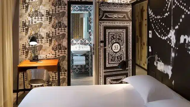 Christian Lacroix avait assurément matière première à son inspiration pour la décoration de l’hôtel l’Antoine ! C’est en effet au cœur de l’un des plus pittoresques faubourgs de Paris, que s’est niché l’établissement à l’emplacement d’un ancien couvent du XVIIe siècle. Aux alentours, beaucoup des traditionnels ateliers d’ébénistes ont fait place aux boutiques de mode les plus branchées, mais l’atmosphère de ce quartier autrefois révolutionnaire et laborieux est restée animée. Sillonné d’innombrables passages pavés et recelant autant de cours intérieures, le Faubourg Saint-Antoine a su conserver son charme d’antan. À deux pas du Café de la Danse et non loin du fameux Marais, l’hôtel l’Antoine offre un pied-à-terre 4 étoiles à tous les visiteurs désireux de s’immerger dans l’effervescence d’une capitale moderne n’ayant pas renié son passé.