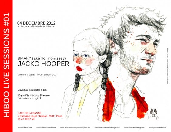 10 euros sur http://www.digitick.com/hiboo-live-session-1-jacko-hooper-flo-morrissey-fiodor-dream-dog-concert-cafe-de-la-danse-paris-04-decembre-2012-css4-digitick-pg101-ri1467499.html / Dans la limite des places disponibles.