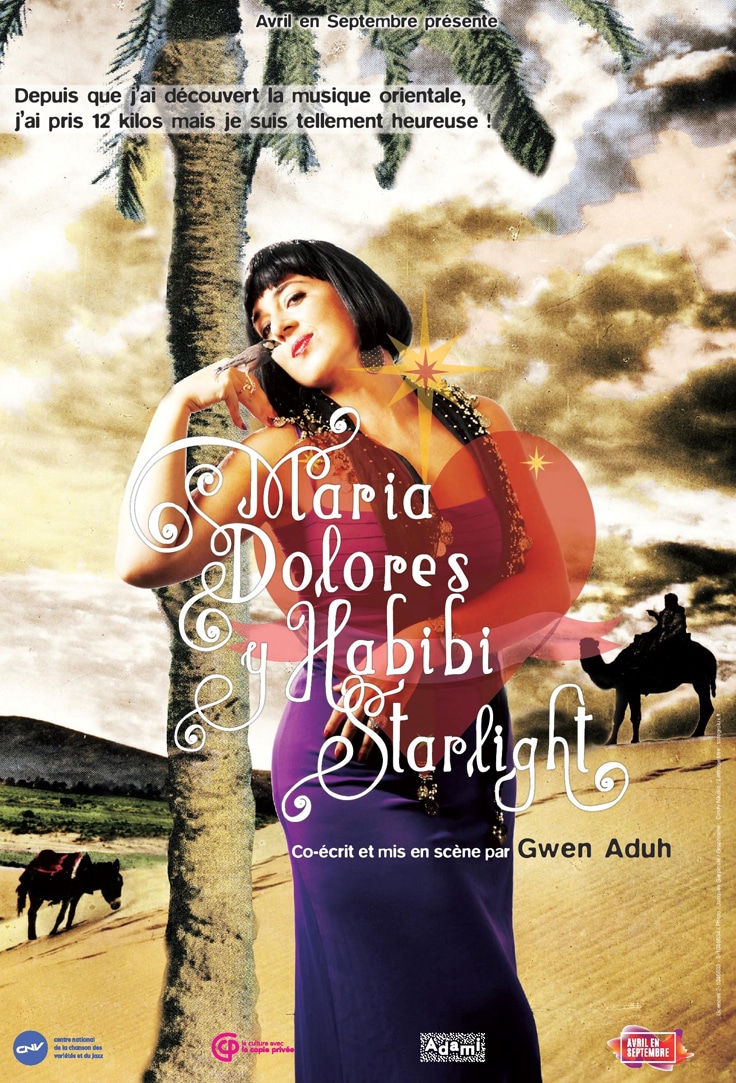 L’odyssée musicale de la biche madrilène… un répertoire original plus imbibé qu’un loukoum, véritable hymne au sable et au narguilé ! Au son du oud, des percussions et du piano, la diva à la voix indigo nous embarque dans son épopée romanesque et hilarante autour de la Méditerranée, de Marseille à Alger, du Sahara à l’Égypte, de la Palestine à la Turquie…. Un pèlerinage aux escales tumultueuses à la recherche de ses amours perdues, un délire mythomane qui pose la « douloureuse Dolores » en véritable « Don Quichotte » version féminine. Le voyage est rythmé par un répertoire oriental enrichi de reprises rares de Fairuz, Abdel Halim Hafez, Connie Francis ou Pierre Notte.