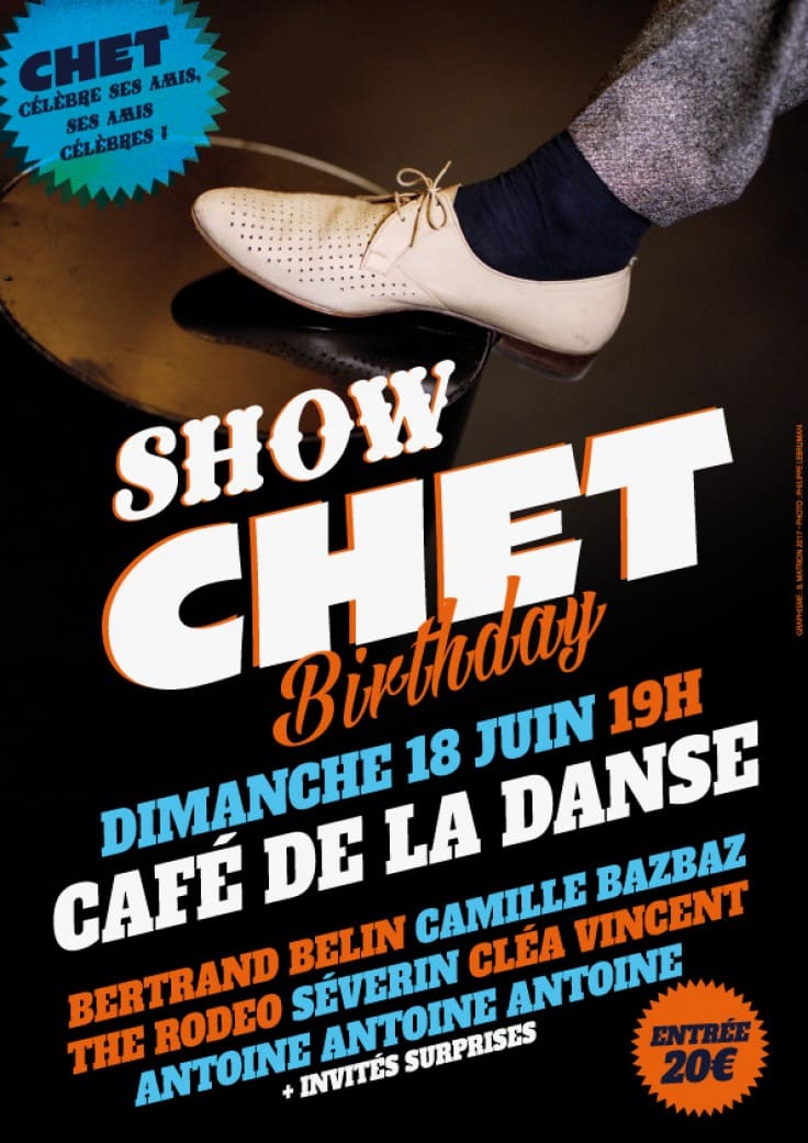A la façon d’un Dean Martin Show ou d’un grand Mezze, Chet se fera une fois encore Maître de cérémonie ou Monsieur Loyal, à votre guise, pour accueillir ses amis chanteurs. Le 18 juin est, certes, l’appel du Général, mais pensez-vous que le général se serait présenté au Show Chet ? Nul ne le sait et à ce stade tout le monde l’ignore et la question restera, de surcroît, en suspens : ne jamais dire jamais mais doit-on tout savoir toujours ? Il s ‘avère que le 18 juin est aussi l’anniversaire de Chet et du Show Chet alors quoi de mieux que de faire la fête en musique avec ses amis et «les amis de mes amis sont mes amis ok». Cette présentation, qui ne répond pas – j’en conviens – aux nouvelles prises de parole du marketing teasing, vous donne un avant-goût de ces soirées uniques, ludiques, musiques, physique quantique, beautés plastiques avec sang chaud et esprit de corps. Le dimanche à Bamako c’est le jour du mariage, le dimanche 18 juin au Café de la danse c’est le Show Chet anniversaire de Chet qui invite Bertrand Belin, Camille Bazbaz, The Rodeo, Séverin, Cléa Vincent, Antoine Antoine Antoine + des invités surprise à partager une seule et même scène pour un seul et même soir comme vous ne les aurez jamais vus. Alors tu viens et pis c’est tout ! Vous serez mon cadeau et je m’offrirai à vous!