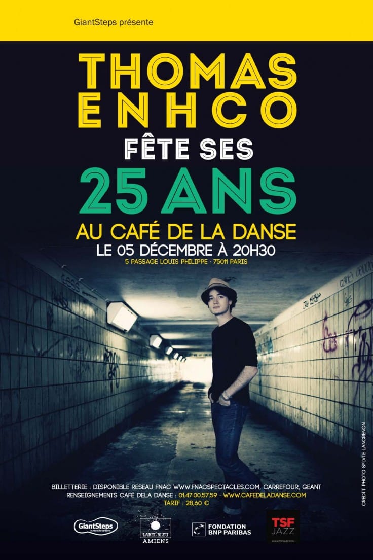 Récemment auréolé d’une victoire du Jazz (Révélation 2013), Thomas Enhco fête ses 25 ans au Café de la Danse. L’occasion de faire un point en musique sur ses projets en cours ! Il présentera pour l’occasion un concert unique, en trois parties : Piano solo, Duo piano-marimba (avec Vassilena Serafimova), et son trio Fireflies.